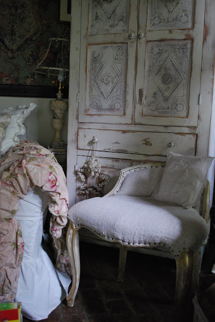 You know Lisa from Serendipity Chic Design and I are friends and live pretty close to each other right? I follow her great blog and she is ALWAYS creating another masterpiece. She can take the worst looking piece of furniture and turn it into something fabulous. And her signs? Oh don't even get me started on those. But I digress.....Anyway, she showed this beautiful Victorian cabinet last week on her blog and I had to have it!